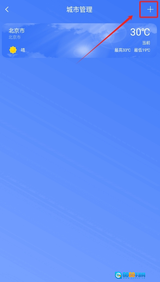 2、在弹出的菜单中,右上角的加号清晰可见,点击该加号,即可准备输入你想要关注的地点。