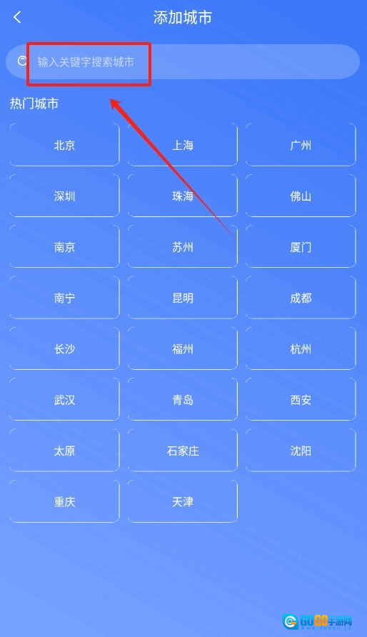 3、在搜索框中输入城市名称,输入完成后点击确定,该城市的天气信息就会添加到你的列表中。