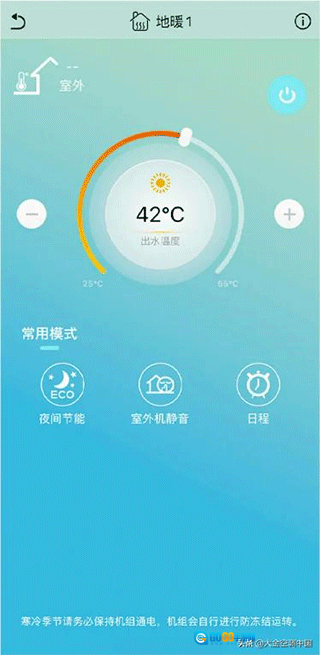 Step1:进入“金制空气”的地暖控制界面,点击【夜间节能】功能按钮