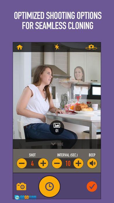 这款应用能让我们把照片里的人或物复制下来,在同一画面里生成最多4个一模一样的影像,而且不用掌握复杂的修图技术,只要有想法就能轻松做到。它可不只是简单的复制模仿,克隆相机中文版最突出的地方,就是能在相同场景下创作出姿态、样子各不相同的照片。只需简单操作拍几张照片,就能在同一场景的照片里“克隆”出另一个你!还有视频教程,一看就懂,你也赶紧来试试“克隆”吧!