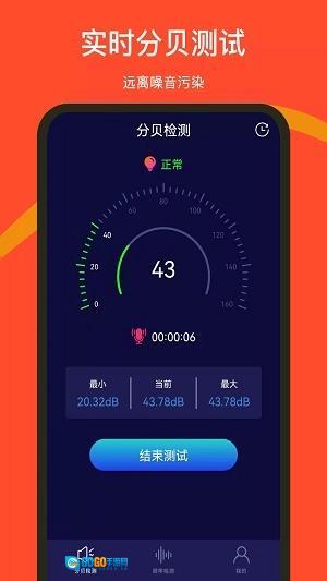 1、噪音检测:支持便捷的分贝测量,呈现可视化的检测结果,可一键播放检测音频,实时提供噪音数据
