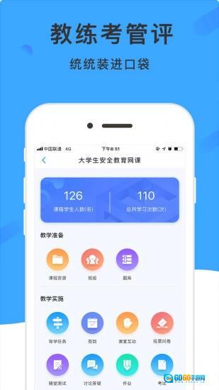 1、全功能:拥有教、学、练、考、管、评等完备的教学功能,还配备了学习行为数据分析工具。