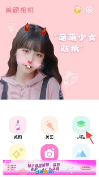 3、进入主界面后,点击【拼贴】图标,然后导入待编辑的图片。