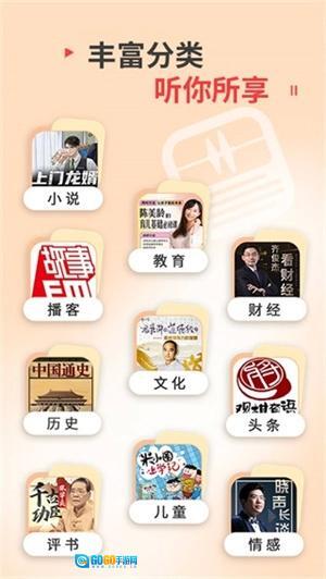 高晓松、蒋勋、老梁、局座、冯唐、唐家三少、齐俊杰、刘兰芳、梅兰芳、张大春、马未都、许知远、胡锡进、王自健、马红漫、洪榕、姬宇阳、黄磊、陆琪、苏芩、周建龙、万峰、宋忠平、朱亚文、叶文、易中天、乐嘉、杨迪、方文山、毕飞宇、戴锦华等众多名家大咖齐聚,他们将分享人生故事,畅谈智慧感悟,呈现精彩内容。无论是脱口秀、有声书、评书还是戏曲,您都能随时聆听,沉浸在知识的海洋中,总有瞬间让您收获颇丰、满载而归。