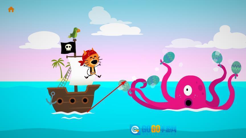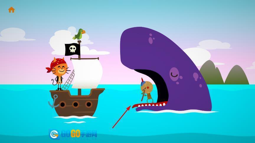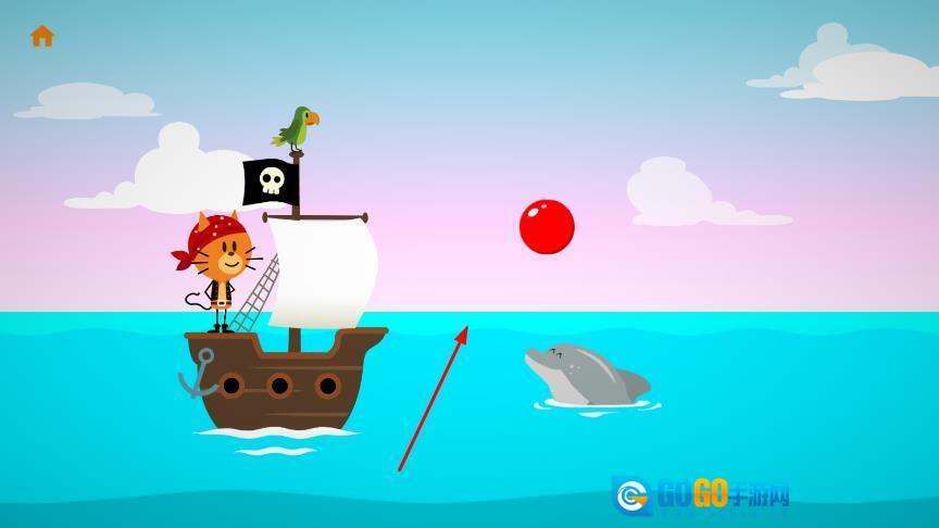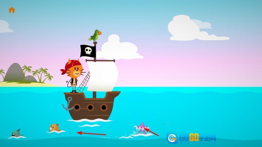 2、进入海洋场景后,你操控的海盗船将在蔚蓝的海面上航行;航行途中会邂逅形形色色的海洋生物与各类物品,你可以通过点击或滑动屏幕的方式,与这些元素展开互动。