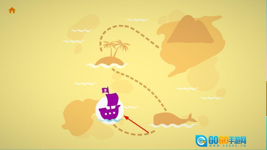1、进入界面后,在木桶中找到海盗形象,此时会展示出一张包含航线等元素的地图,地图上有一个紫色的海盗船标识,点击这个标识即可开始游戏。