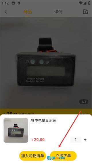 2、在搜索结果里挑选【锂电电量显示表】这款商品,然后进入该商品的详情页面。