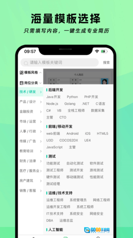 简历神器是一款专业、高效且智能的简历工具,为用户提供在线简历服务,拥有海量专业模板可供选择。它还针对性地准备了社招、校招和跳槽简历模板,能满足不同求职者的需求——不管你是正在求职的社会招聘人员,还是参与校园招聘的应届生,亦或是有跳槽打算的职场人,简历神器都能为你匹配到合适的模板。