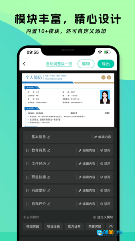 简历神器是一款简历制作软件,拥有丰富多样的简历模板,包括个人简历模板、求职简历模板、简历word、简历制作等功能。这些模板都采用了精美独特的排版,让你的简历在众多求职者中脱颖而出。无论你是应届生、全职工作人员、实习生还是校园招聘者,简历神器都能满足你的需求。简历神器还会提供专业用词建议,帮助应届生凸显自己的优势,让简历更具说服力。