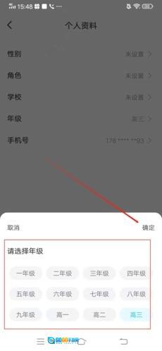 3、在弹出的窗口里,我们可以根据孩子当前的年级进行选择,选好之后点击“确定”就能完成操作了。