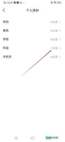 2、在个人资料界面,点击“年级”右侧的具体年级;