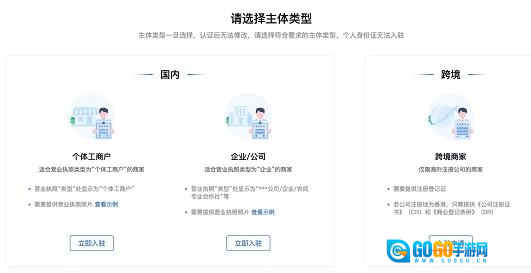 -目前不支持以个人身份入驻,仅支持企业/个体。