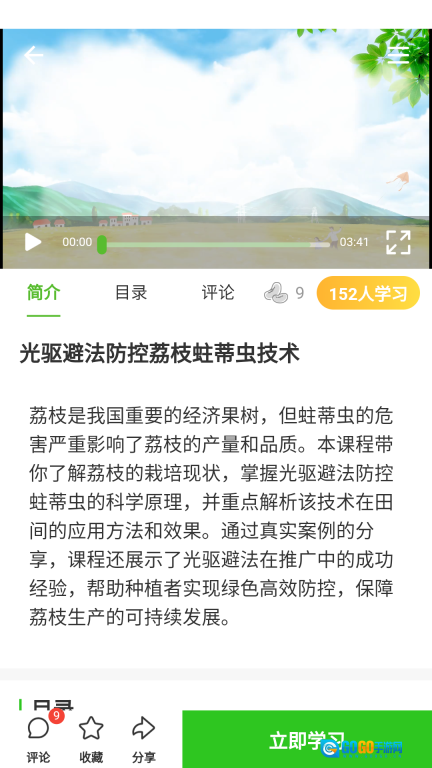 3、播放视频,立即学习,还可收藏和分享。