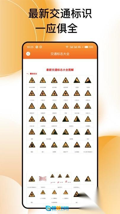 2、通过图文结合的方式介绍各类交通标志,并附上详细说明,助力用户更清晰地理解与记忆。