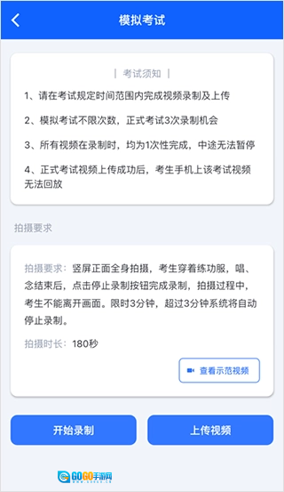 6、根据语音提示完成考试动作,视频自动保存上传。