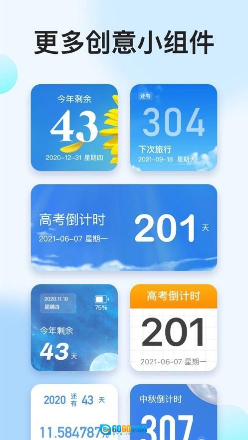 1、添加倒计时事件:用户能够在软件里添加日常生活里的各类事件,像生日、结婚纪念日、考试日期之类的。