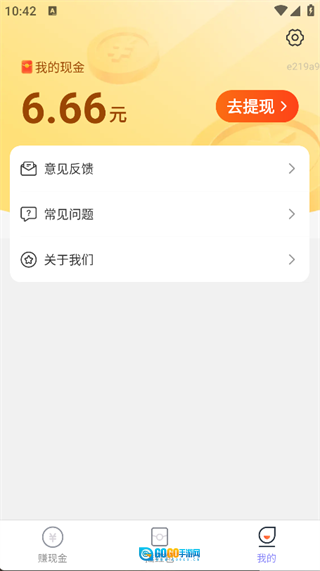 4. 点击页面底部的“我的”选项,就能查看个人的现金余额,点击“去提现”按钮,就能完成快速提现操作。