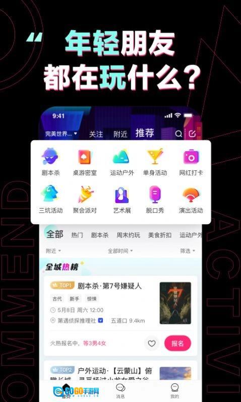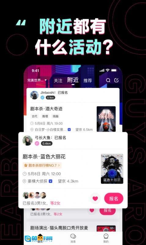 完美活动是一款深受年轻人喜爱的社交平台,专为热爱剧本杀的同好群体打造。平台汇聚了各类趣味十足的活动,鼓励大家从线上走向线下,在真实互动中感受人与人之间的温暖与真挚。除了剧本杀,还有音乐节、漫画展、特色影厅等丰富多样的活动类型,无论是线上交流还是线下相聚,玩家都能轻松找到志同道合的好友。