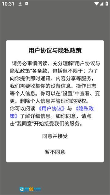 1、能够直接使用最新版本的软件,进入软件时需要先同意隐私权限设置。
