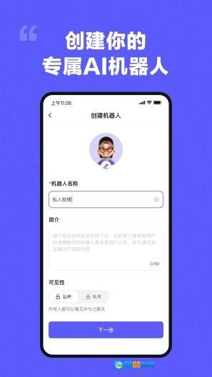 4、待所有内容输入完成,点击“下一步”,接着输入设定描述与机器人的开场白。
