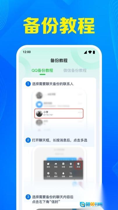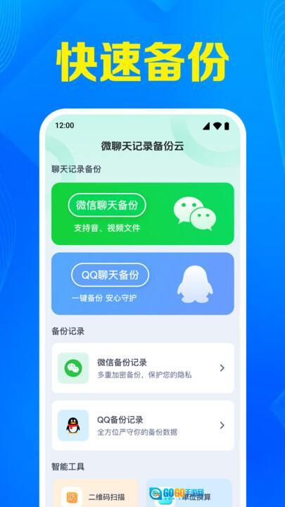 1、该应用可实现微信与QQ这两大主流社交平台聊天记录的备份功能,涵盖文字、图片、视频及音频文件等各类内容,用户在完成保存操作后即可启动备份流程。