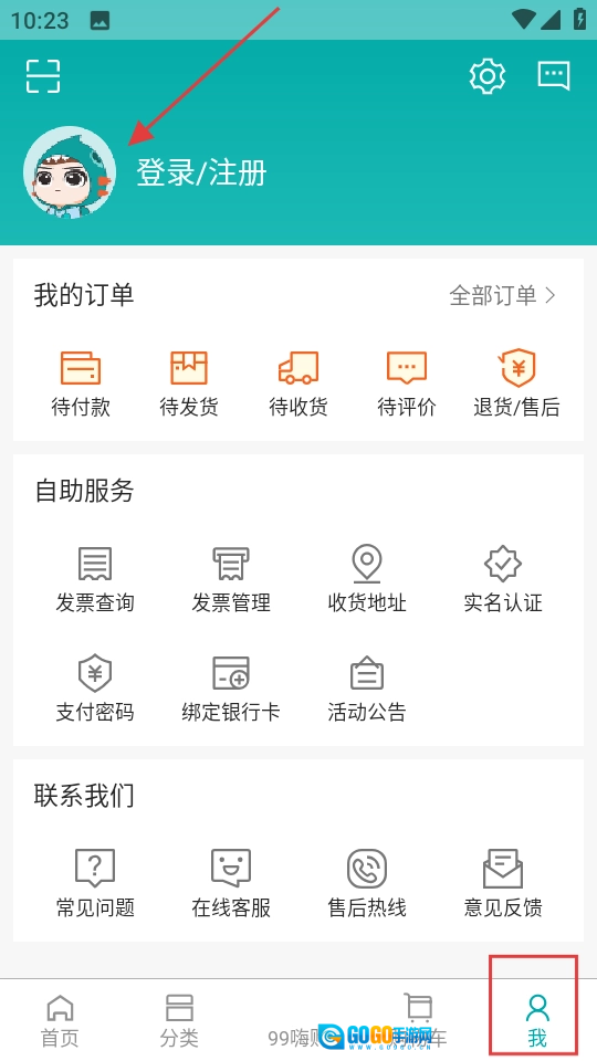 1、在我的页面点击登录注册,进入登录注册流程。