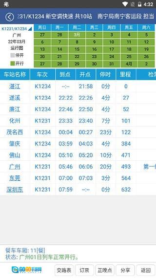 列车时间查询:您可以在站台上查询列车的出发时间、到达时间,以及两地之间的行程所需时长。
