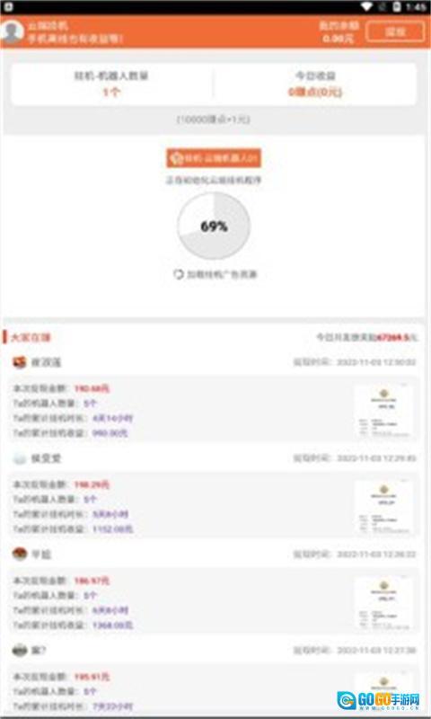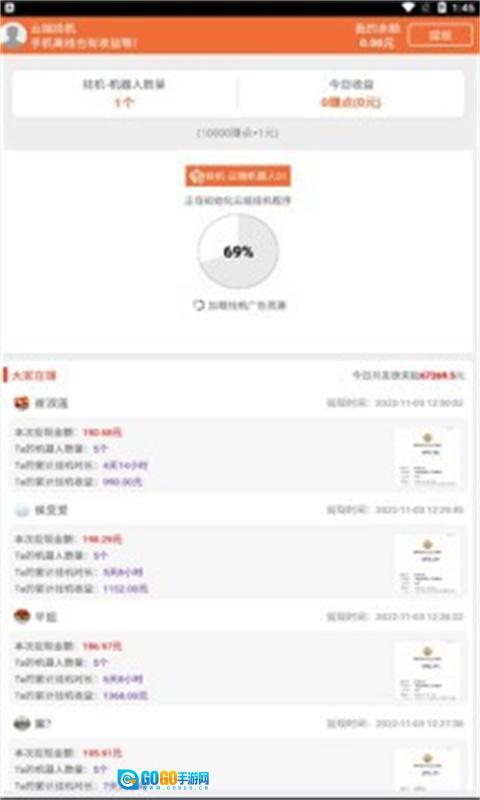 4、每天都能有收益,这款软件以线下为主,它可以自动观看广告,通过刷快手来赚钱并和大家分享。