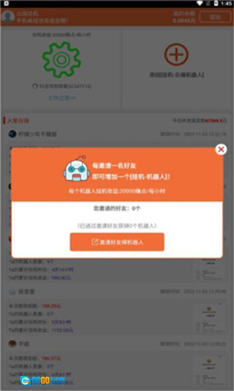 在云端挂机的过程中,你能体验到各种独特的功能。每次成功邀请好友,还能获得额外收益,随着时间推移不断解锁更多内容,轻松赚取零花钱。