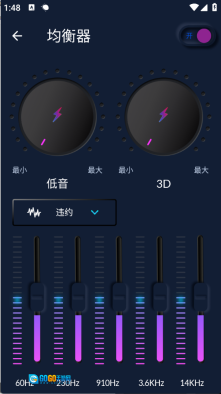 2、需搭配音乐播放器使用,可实现50%、100%、150%的音效增强以及最大音效模式。