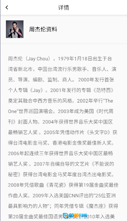 4、点击查看歌手的简介信息,就能在线了解该歌手的相关资料。