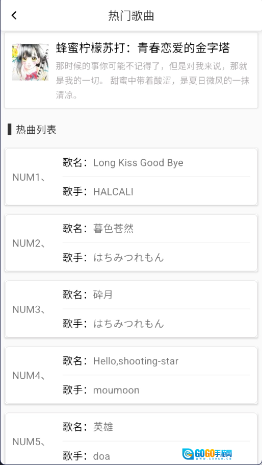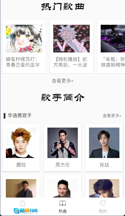 4. 热曲列表:展示热播歌曲类别,方便用户查看。