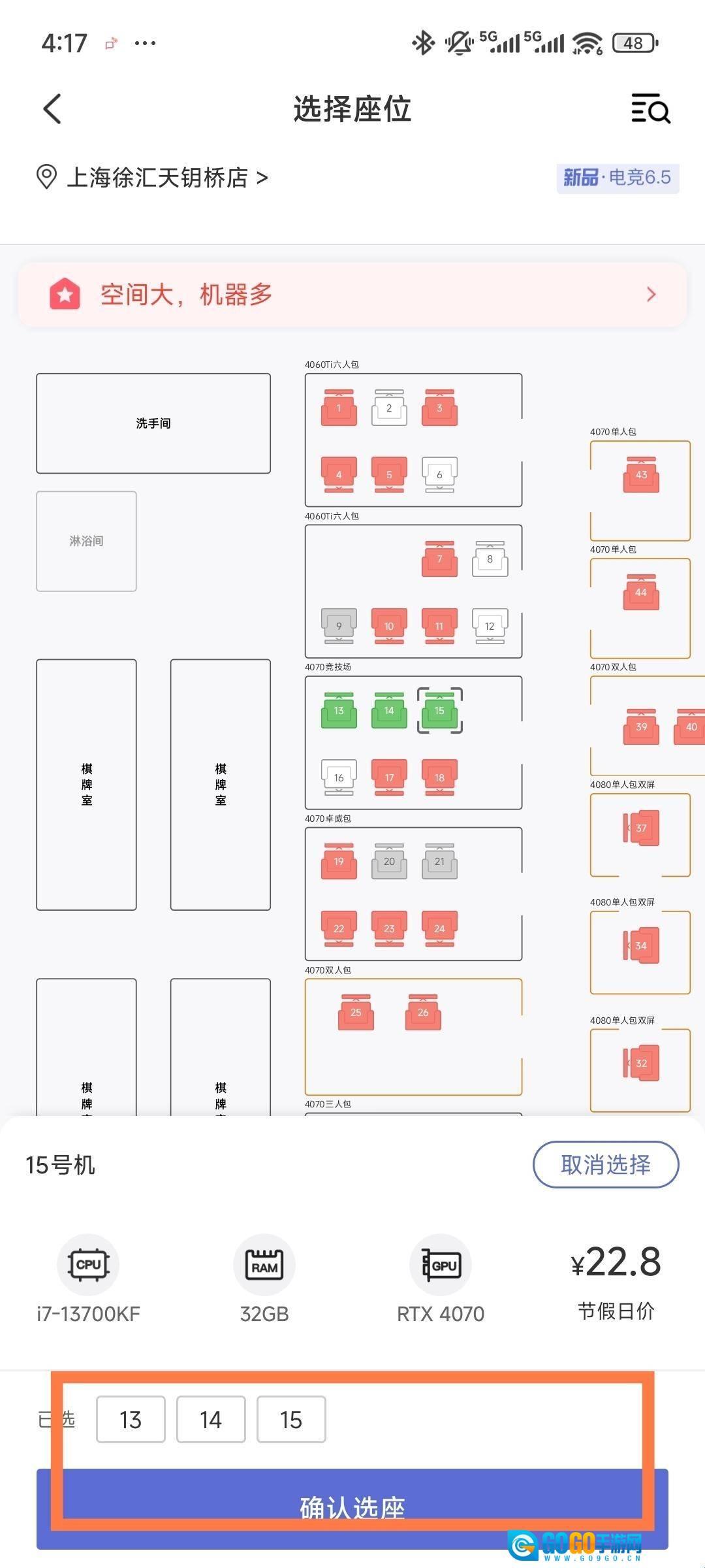2、选择好位置后,点击确认选座。