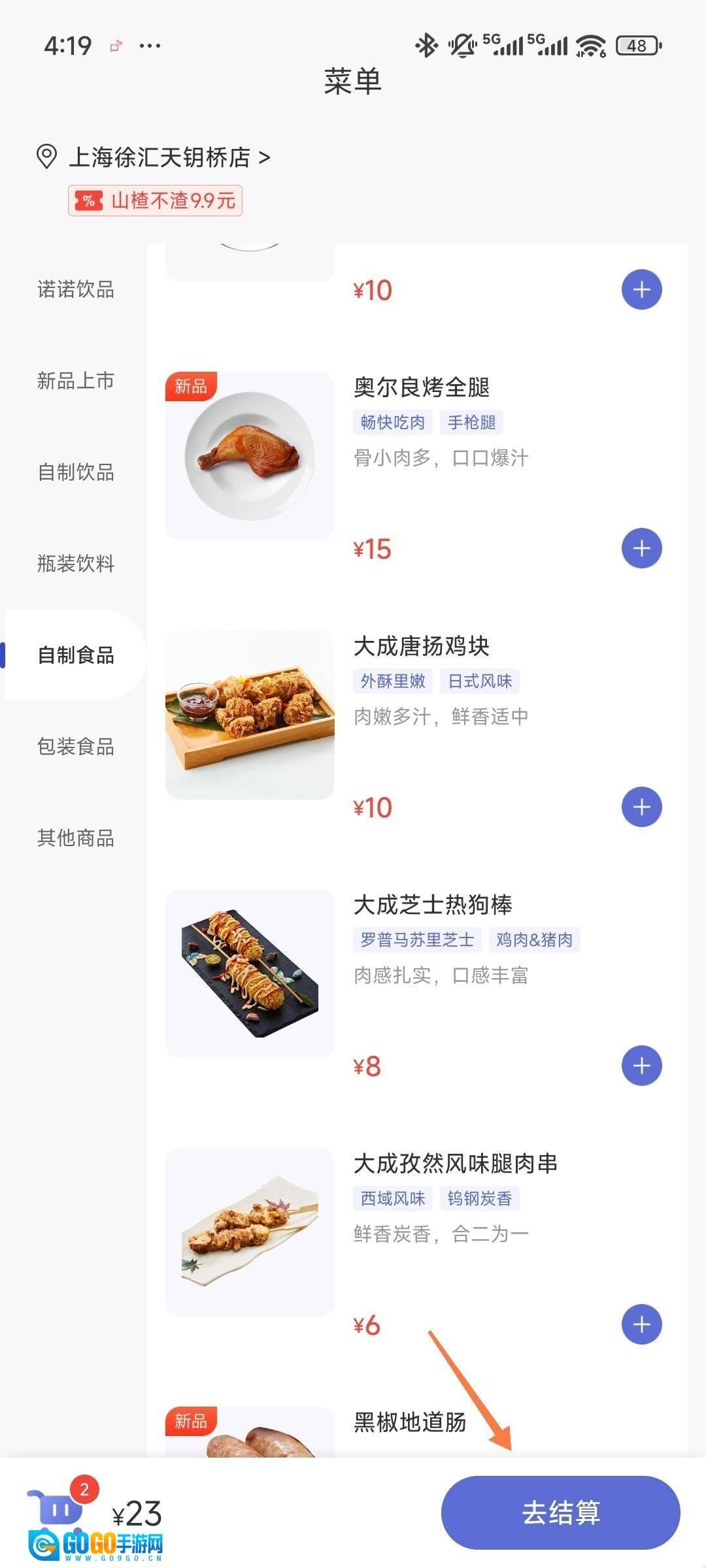 4、搞点你喜欢吃的小炸鸡小辣条啥的点击去结算。