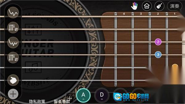 吉他的弹奏效果非常逼真,玩法简单有趣,有非常详细的教学指导;