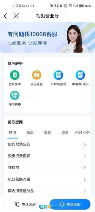 4、点击进入后,界面如图所示。在这里,您可以直接选择在线服务或电话服务,点击相应选项就能开始咨询您的业务。
