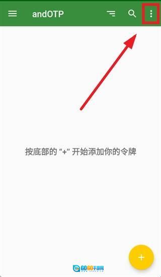 1、打开andotp应用,进入主界面后,点击界面右上角如示意图所示的三竖点图标按钮