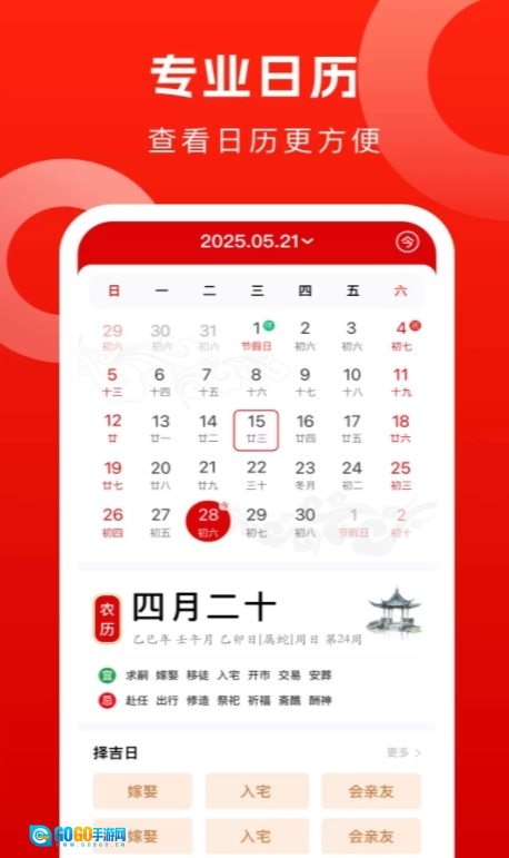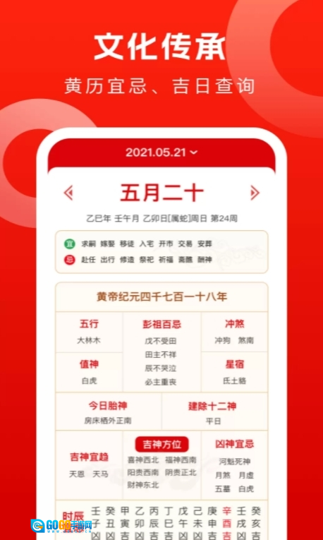 2、吉日查询与解读:配备详尽的吉日查询功能,同时附有黄历的现代文解读内容,助力用户更清晰地理解并挑选合适的吉日。