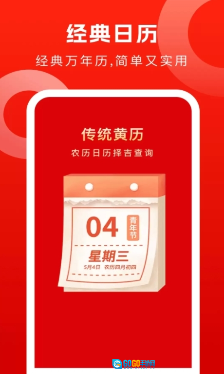 3、大字版设计:鸿运万年历的大字版采用较大字体,整体设计简洁清爽,更契合中老年人的使用需求,便于他们轻松查看信息与操作功能。