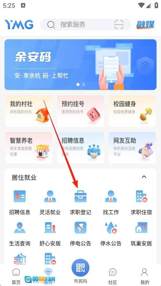 2、然后点击【求职登记】