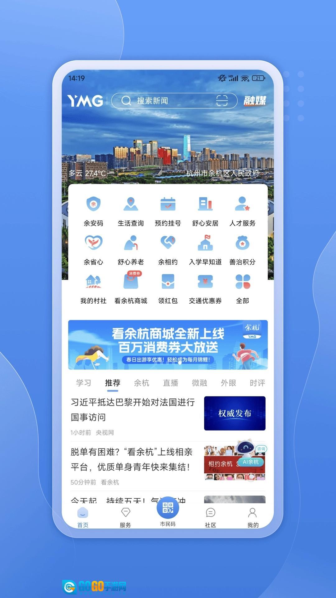 看余杭是一款专为杭州市余杭区市民打造的综合服务平台,整合了资讯、求职、政务、新闻等多个板块,旨在让用户及时了解余杭的发展变化,并享受更全面的生活服务。无论是本地热点资讯还是国内外时事动态,平台都能为用户提供。