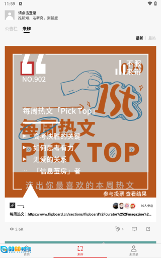 3、来辩界面可以查看各种文章