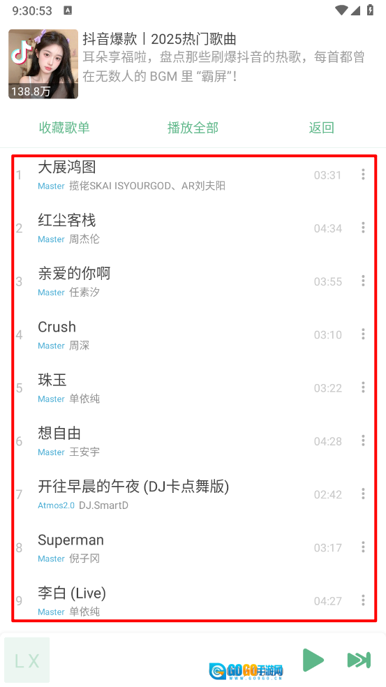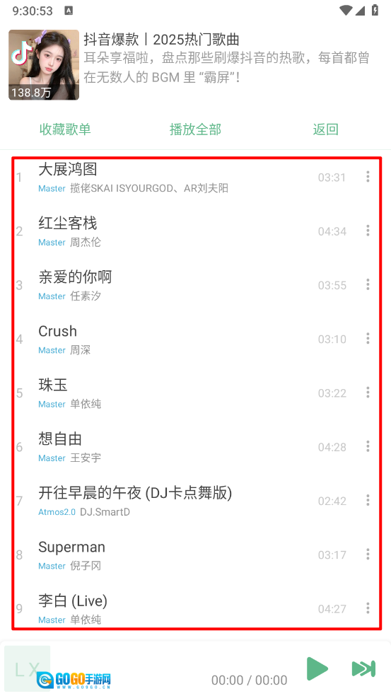 2、任意点击进入,即可选择喜欢的歌曲进行播放。