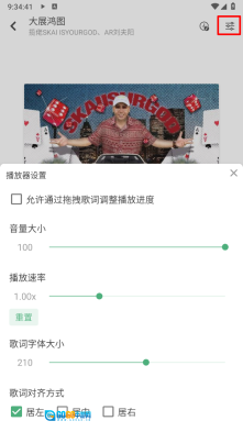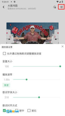 6、最后点击右上角的均衡器图标,就能依据自身需求对播放器进行相关设置。