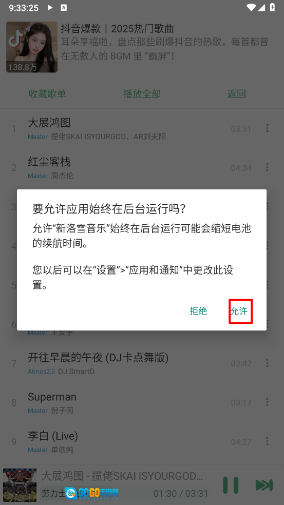 4、如图所示,开启相关权限使其能够在后台运行,这样就能实现后台播放功能了。