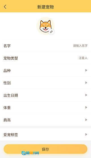 4、接着编辑爱宠的名字、品种、出生日期、体重、性别以及相关标签等信息,完成后点击“保存”按钮即可。