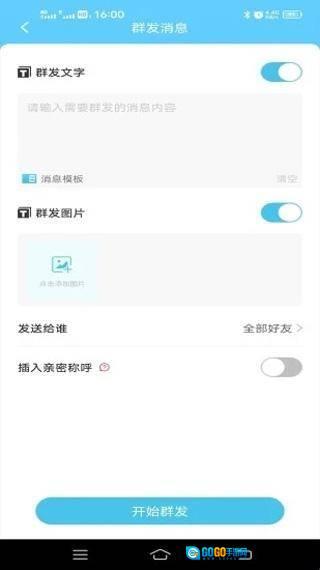 1、支持群发消息与图片,让群发内容更生动;还能添加昵称进行亲密群发,让每一次群发都更有温度