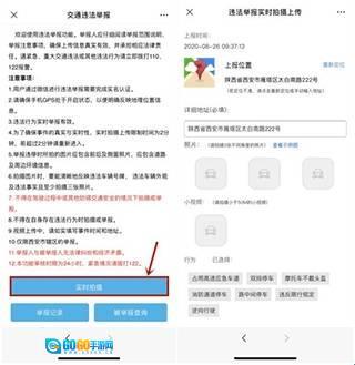 3、接下来直接拍摄现场照片或视频就行(这里以微信小程序为例),要仔细阅读举报须知,然后点击“实时拍摄”→拍摄现场照片,并按照页面提示填写举报行为和车牌号。