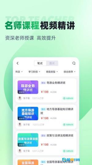 4、专业的课程讲解采用资深教师授课的精讲视频形式,内容深入浅出且丰富详实,能让用户在轻松的学习氛围中有效掌握导游资格证的相关知识。
