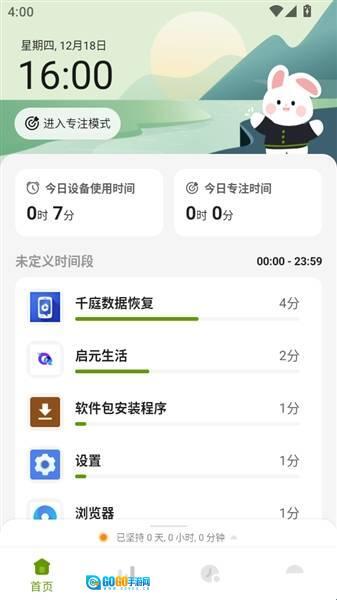 4、进入首页后,既能查看今日设备的使用情况,也能开启专注模式。